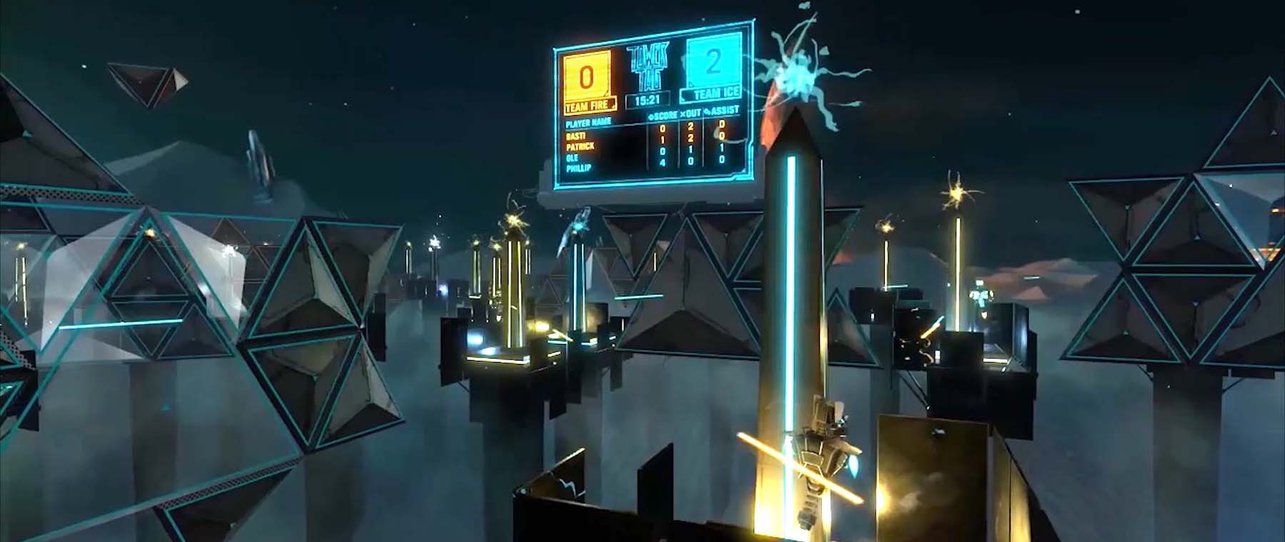Tower Tag — це гіпердинамічний футуристичний пейнтбольний шутер, схожий на PVP, із захватним лассо, який дозволяє миттєво переміщуватися з вежі на вежу.